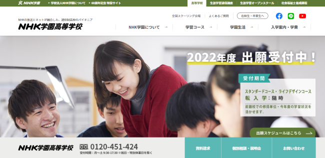 NHK学園高等学校は名前の通りNHKが設立した通信制高校で、全国どこからでも入学出来る学校です。